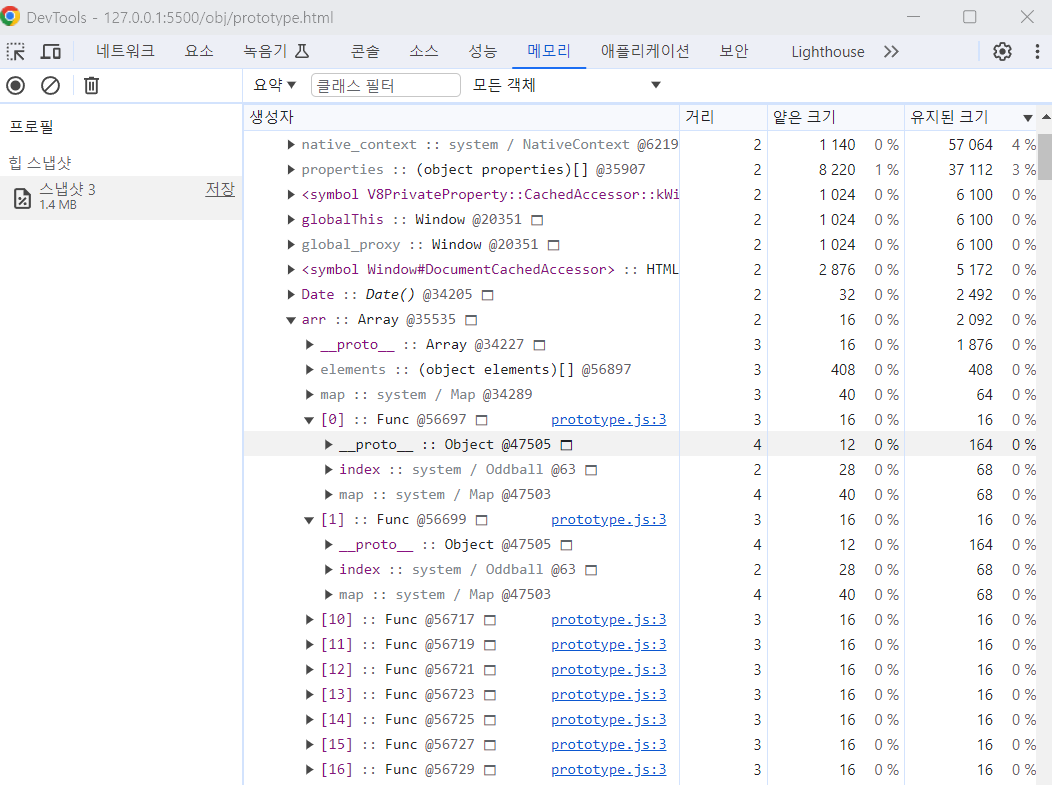 Object를 열어보면, 호출할 때마다 함수가 새로 생성되어 메모리를 사용하게 되는 것을 확인할 수 있습니다.